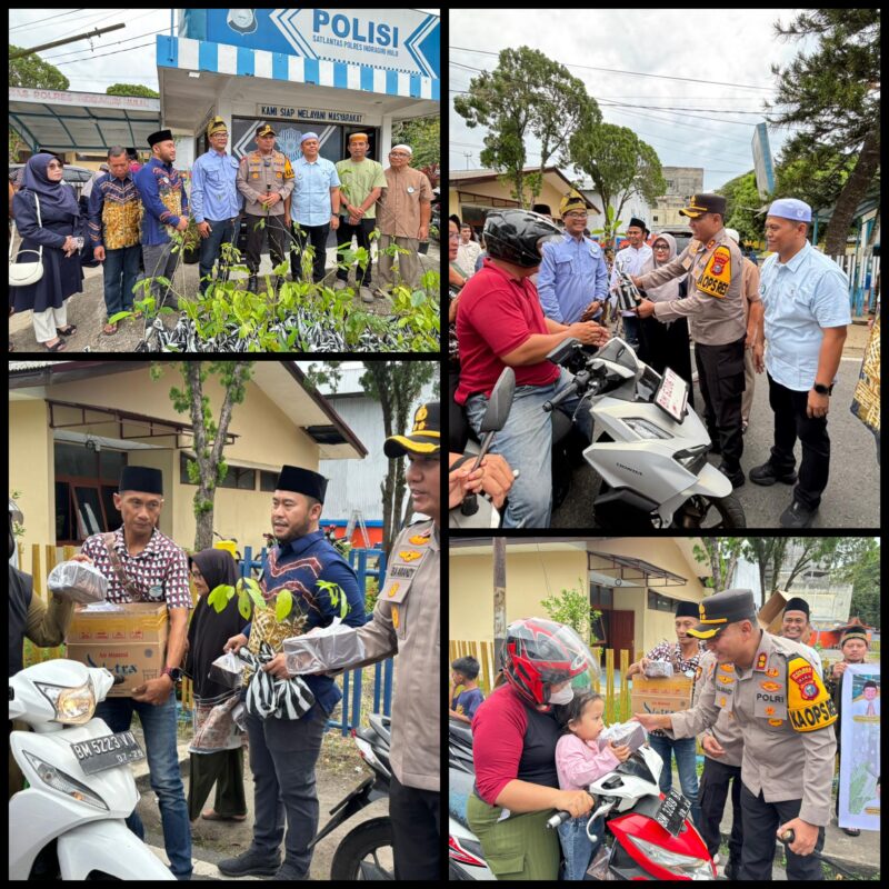 INHU – Semangat kebersamaan dan kepedulian terhadap lingkungan menyatu dalam kegiatan sosial yang digelar di Pos Persahabatan Kecamatan Rengat, Sabtu (14/3) sekira pukul 17.00 WIB. Polres Indragiri Hulu (Inhu) berkolaborasi dengan Kerukunan Bubuhan Banjar (KBB) Inhu dan Pemuda Inhil Riau Rayon Inhu dan Kuansing menggelar sosialisasi program Green Policing Kapolda Riau, sekaligus membagikan bibit pohon gratis dan paket takjil kepada masyarakat.